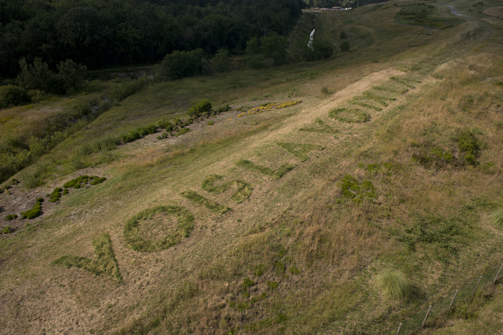Ces lettres tracées dans l’herbe pousseront tout l’été sur une colline recouvrant des « restes » (ndlr : la colline abritait, il y a plus de 30 ans, l’ancienne décharge communautaire de Bordeaux).