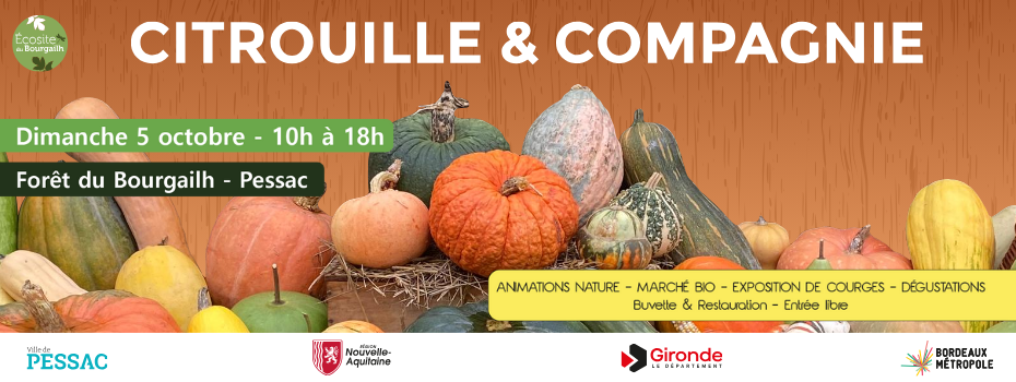 Citrouille & Compagnie se déroulera à la Forêt du Bourgailh (160 avenue de Beutre 33600 PESSAC) à l’entrée principale du site jusqu’aux Jardins du Bourgailh. Bonne journée !